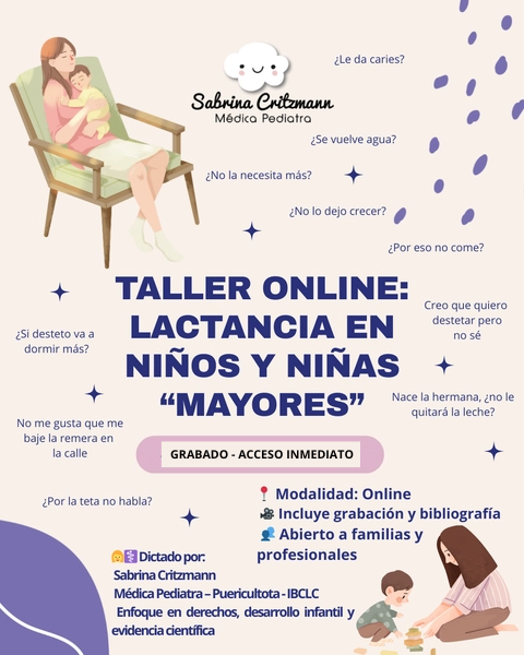 Brindar información actualizada y basada en evidencia sobre la lactancia en niños y niñas mayores de 1 año, abordando aspectos biológicos, nutricionales, emocionales, vinculares y sociales, para acompañar decisiones informadas y libres de culpa.